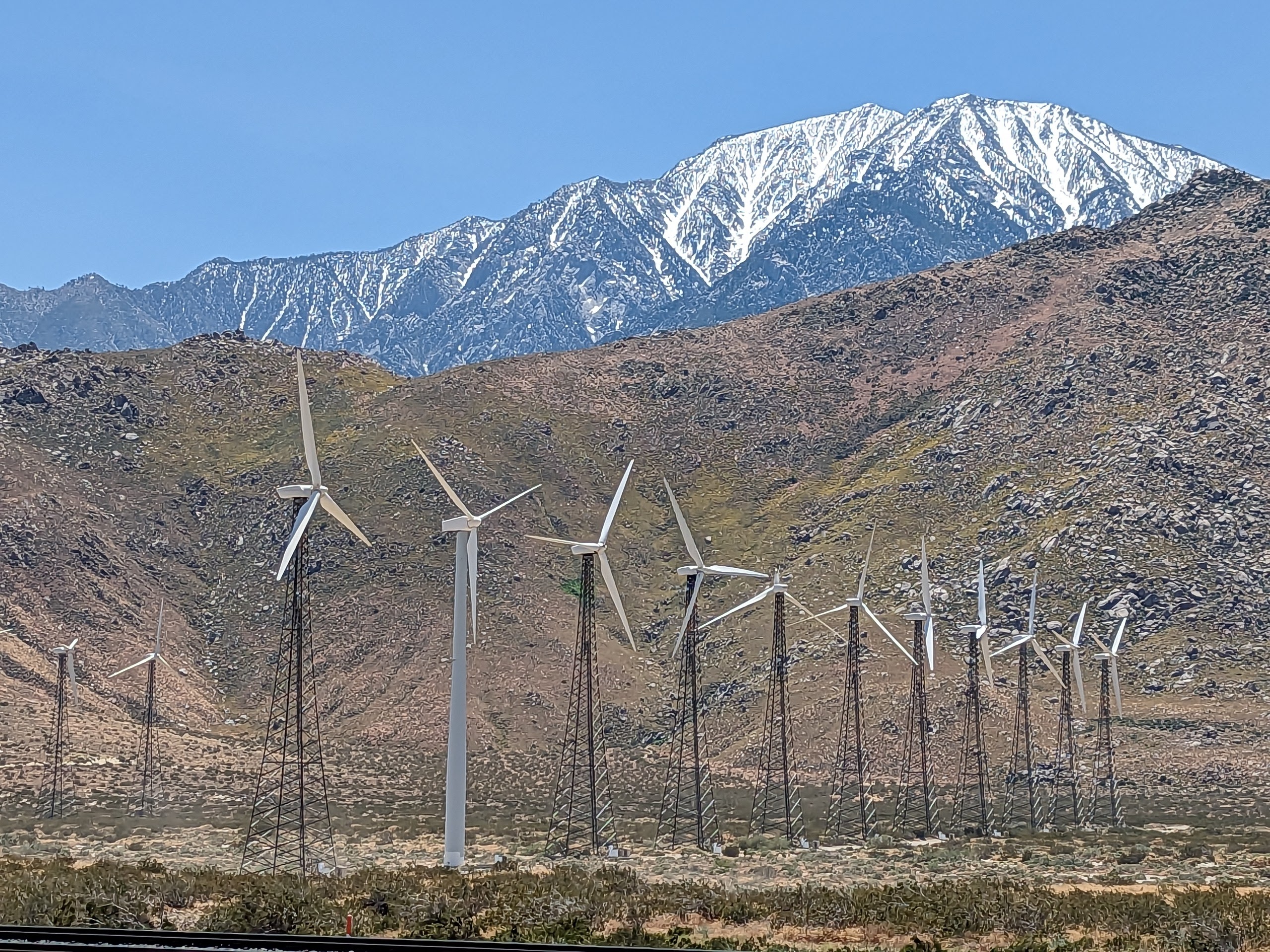 Today was a nearly perfect day. We set off as a group, climbed over the San Gorgonio Pass, and then rode a powerful tailwind downhill through Palm Springs to Indio.