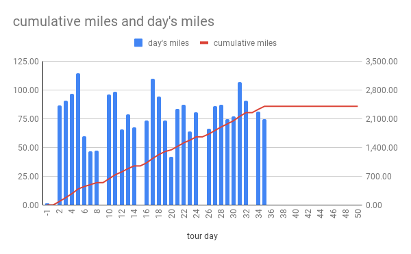 Tomorrow it’s a late start (9:30 instead of 7:30!) and then a short 50 mile ride to Richmond and another Cracker Barrel dinner.
