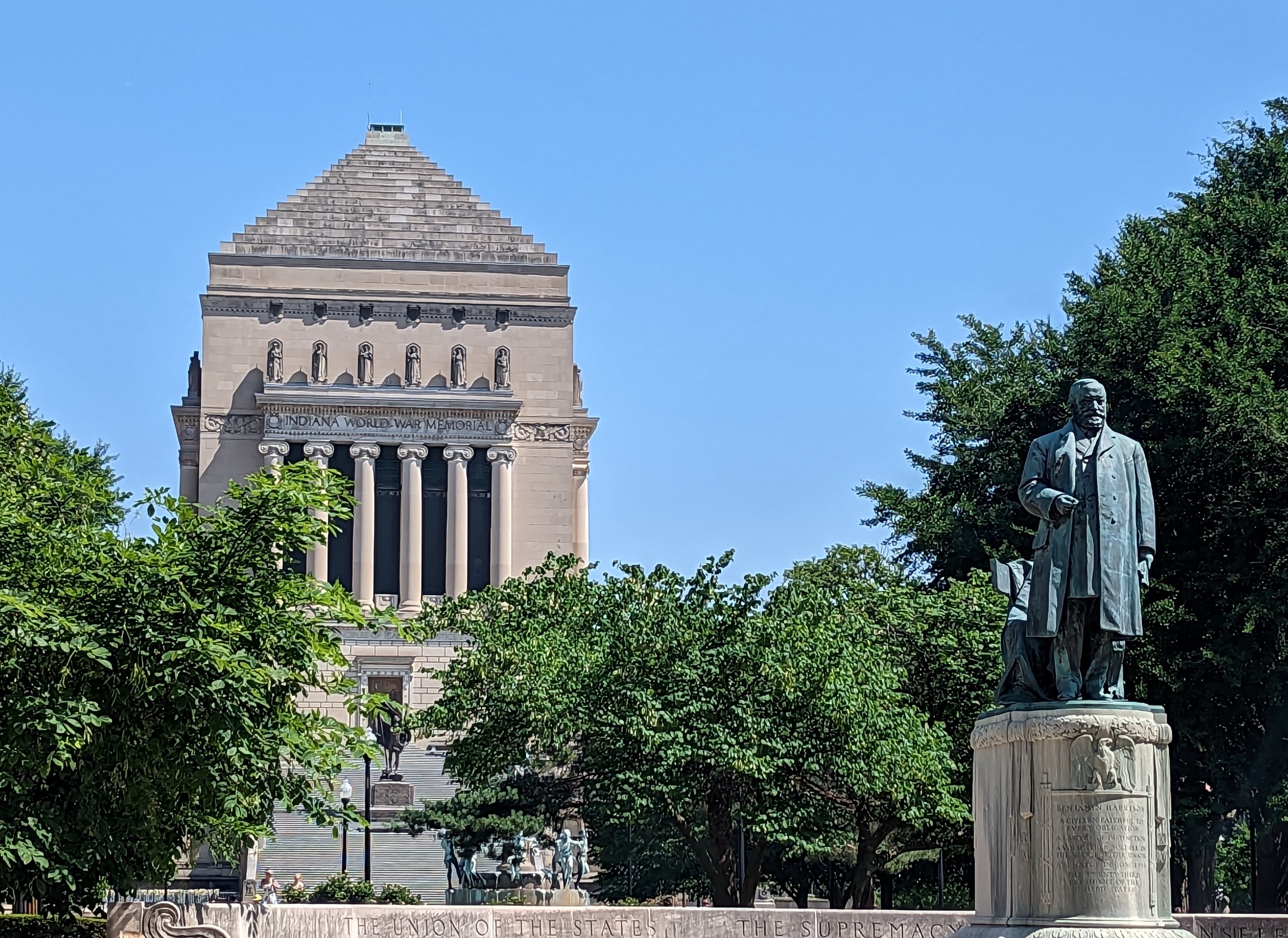Indianapolis was the highlight of today’s 75 mile ride from Crawfordsville to Greenfield, Indiana. We were within earshot of the Speedway, in the town of Speedway, where they’re very proud of their Speedway.