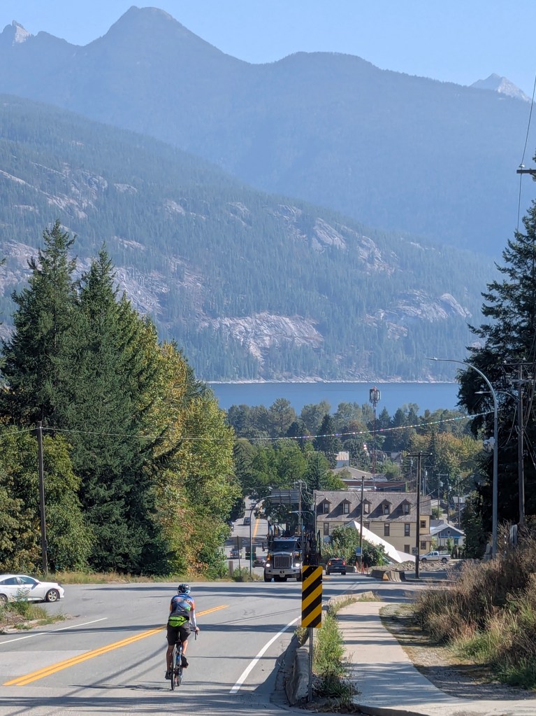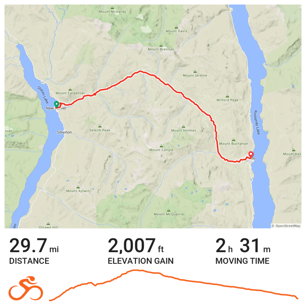 From lunch it was a continuous 20 mile downhill coast along a creek to the lakeside town of Kaslo.