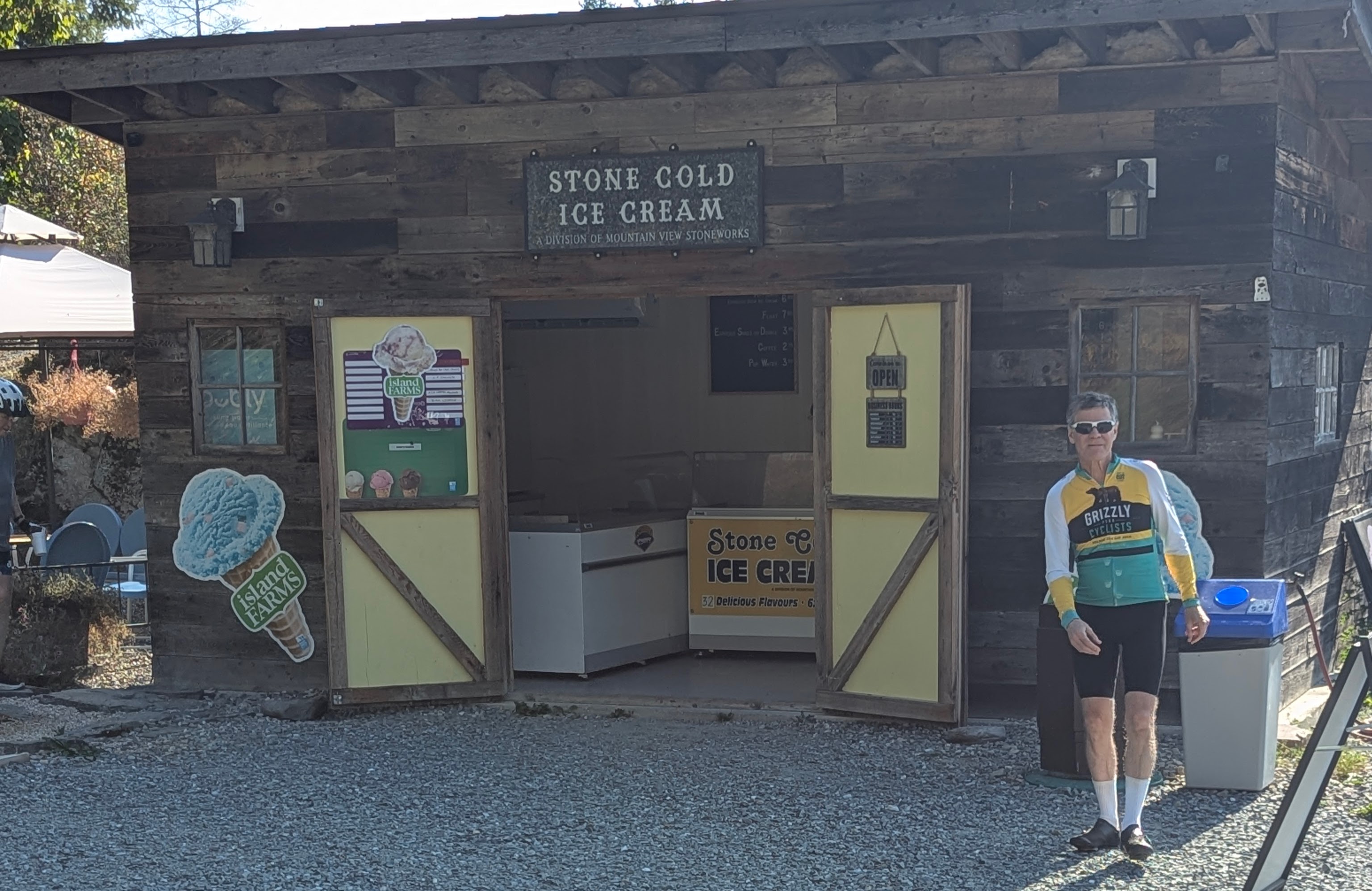 After climbing the far side of the shore we had a long ride with lots of rolling climbs to the town of Creston, BC. On the way we stopped for root beer floats at a store which opened just for us, having closed for the season. Ice cream is always good on the bike.